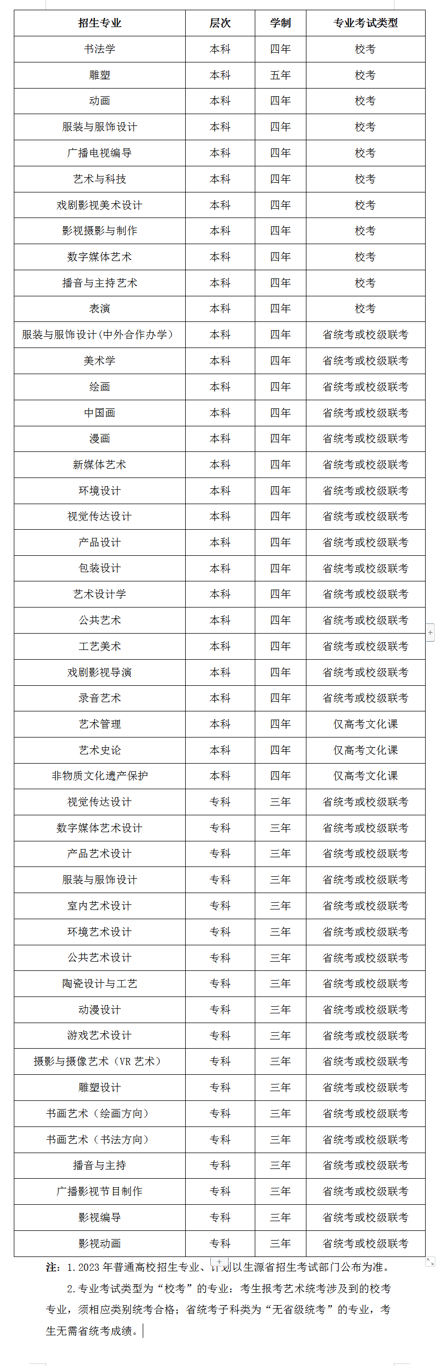三、2023年艺术类专业校考信息
